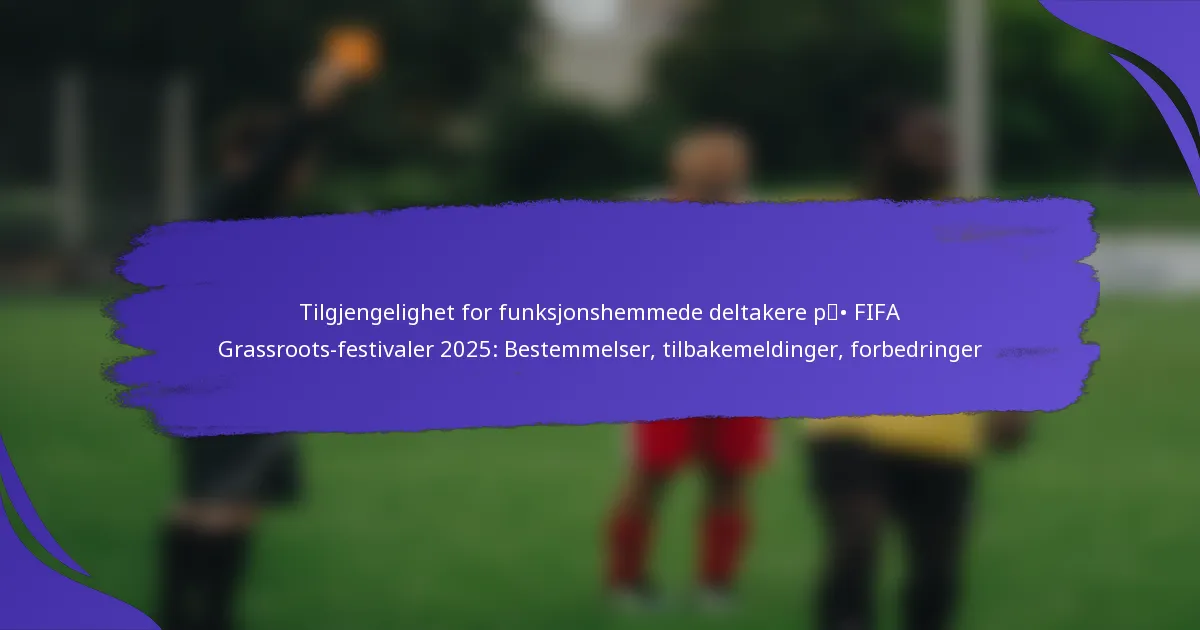 FIFA er forpliktet til å gjøre grassroots-festivaler tilgjengelige for deltakere med funksjonsnedsettelser. Dette inkluderer å tilby fysiske tilpasninger som ramper for rullestol, tilgjengelige toaletter og bestemte sitteområder. I tillegg er kommunikasjonsverktøy som tegnspråktolk og trykte materialer i punktskrift tilgjengelige for å forbedre deltakelsen.